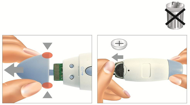 Cách thay pin: Nhiệt kế có một pin lithium đã được lắp đặt sẵn khi sản xuất. Khi biểu tượng hết pin được hiển thị trên màn hình LCD, hãy thay pin cho máy theo các bước sau: