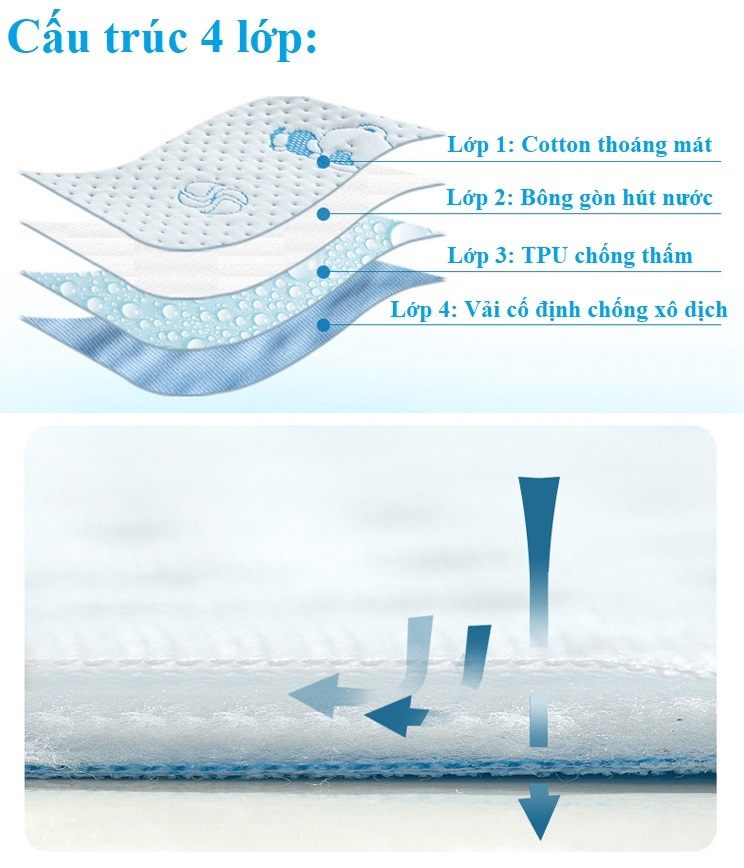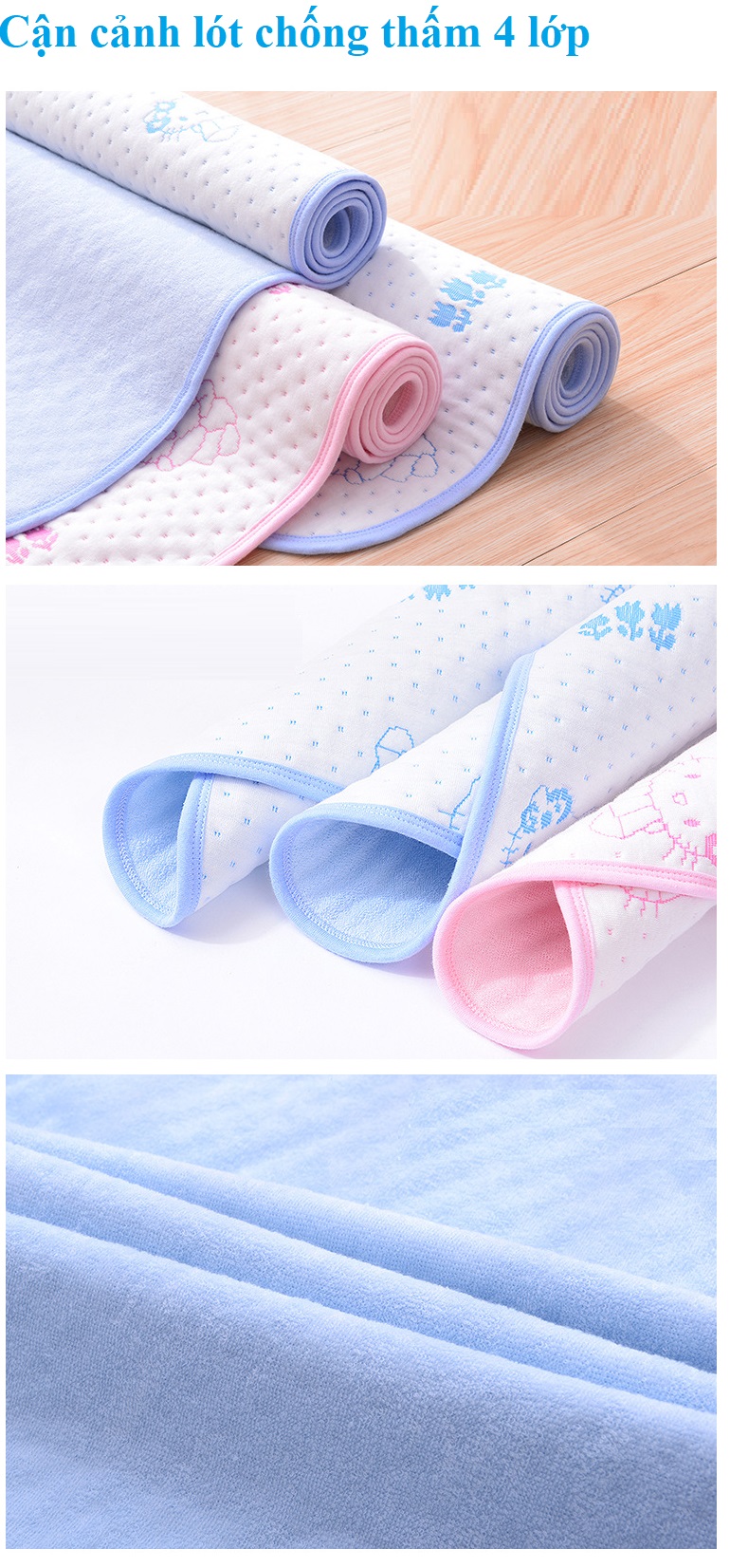 Thảm Chống Thấm, Lót Chống Thấm 4 Lớp Cho Em Bé đặc biệt hữu ích giúp bé có không gian sạch sẽ, vệ sinh của riêng mình khi mẹ đặt mông em lên và thay bỉm, quẩn áo,..