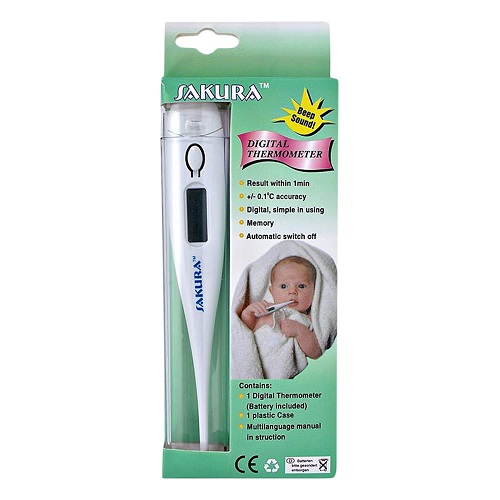 Nhiệt Kế Điện Tử Sakura dùng để đo nhiệt độ ở đo ở miệng, nách hoặc hậu môn cho bé, kiểm soát tình trạng tăng giảm nhiệt độ để đánh giá tình trạng sức khỏe của bé mỗi ngày.