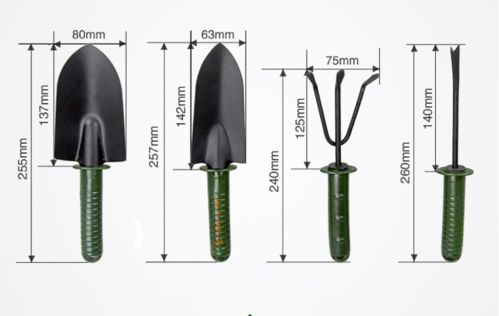 Thiết kế xinh xắn, nhỏ gọn. Cứng cáp, bền khỏe, cán chống trơn trượt. Phù hợp làm vườn phố. Giúp đất tơi xốp một cách dễ dàng,tạo môi trường thông thoáng cho cây phát triển. Tha hồ đào , xới, trộn , xúc với 4 dụng cụ trọng bộ sản phẩm. Sơn tĩnh điện